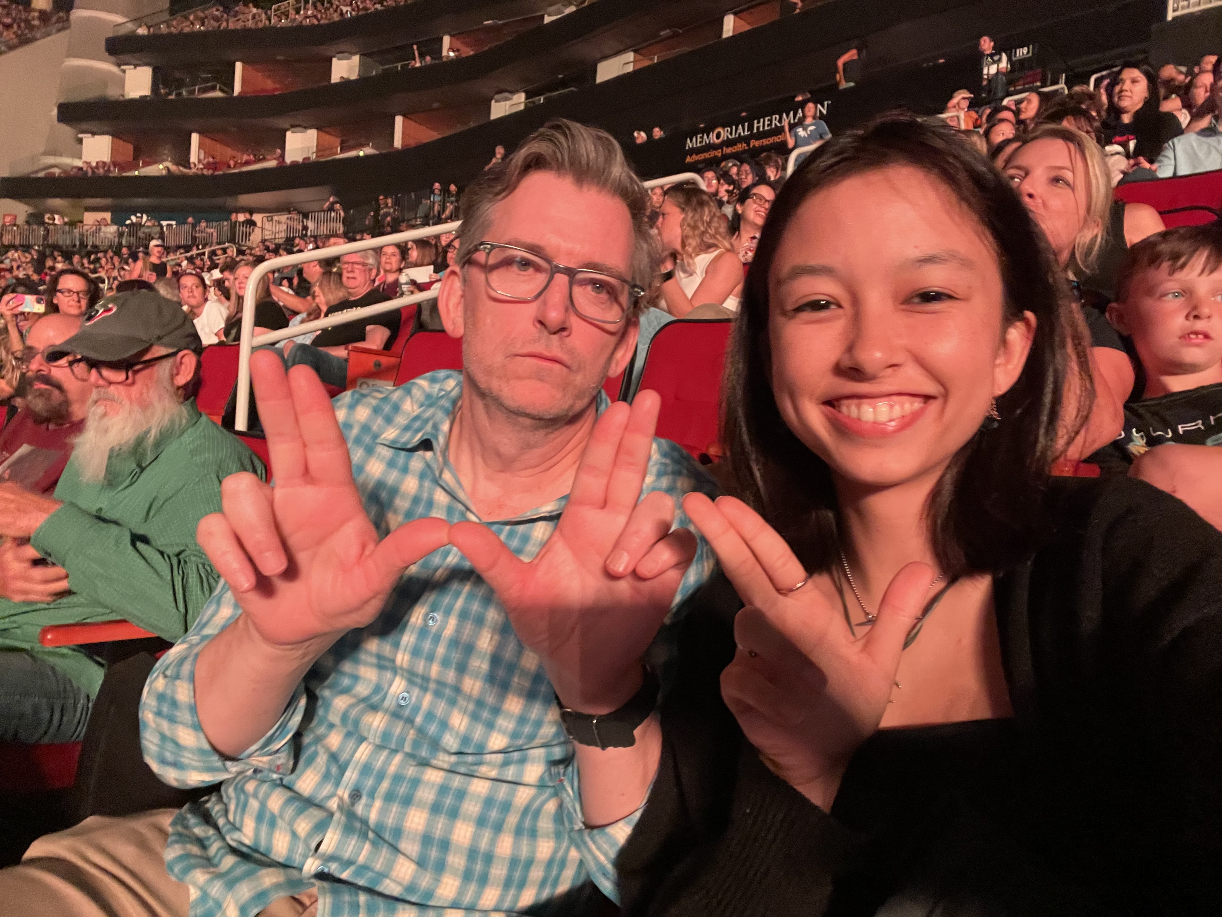 The set was broken up into three segments: 1) post-1996 songs that many fans tolerate, 2) cult classics off of Weezer’s second studio album Pinkerton and 3) the entirety of Weezer, the blue album. The first segment paid homage to hits like “Pork and Beans” and “Beverly Hills," which Dad and I BELTED in long car rides growing up. “Perfect Situation” is the song of my generation. The transition between each segment was transcendentally geeky; the Pinkerton segment was introduced by a large, animated Weezer “W” with glasses that proclaimed that the “space ship” had reached the “Pinkerton asteroid belt,” to crazed audience screams. Cue “Why Bother?” a classic Pinkerton track filled with 90s angst and relationship ennui. I thought the vocals were a little garbled. The dude with the gray beard rocking out next to me was awesome and loving it. In my opinion, the Pinkerton section of the night was a smashing success. The crowd was in UPROAR at the transition to the blue album, which Weezer played all the way through chronologically. Dad and I knew every single word.