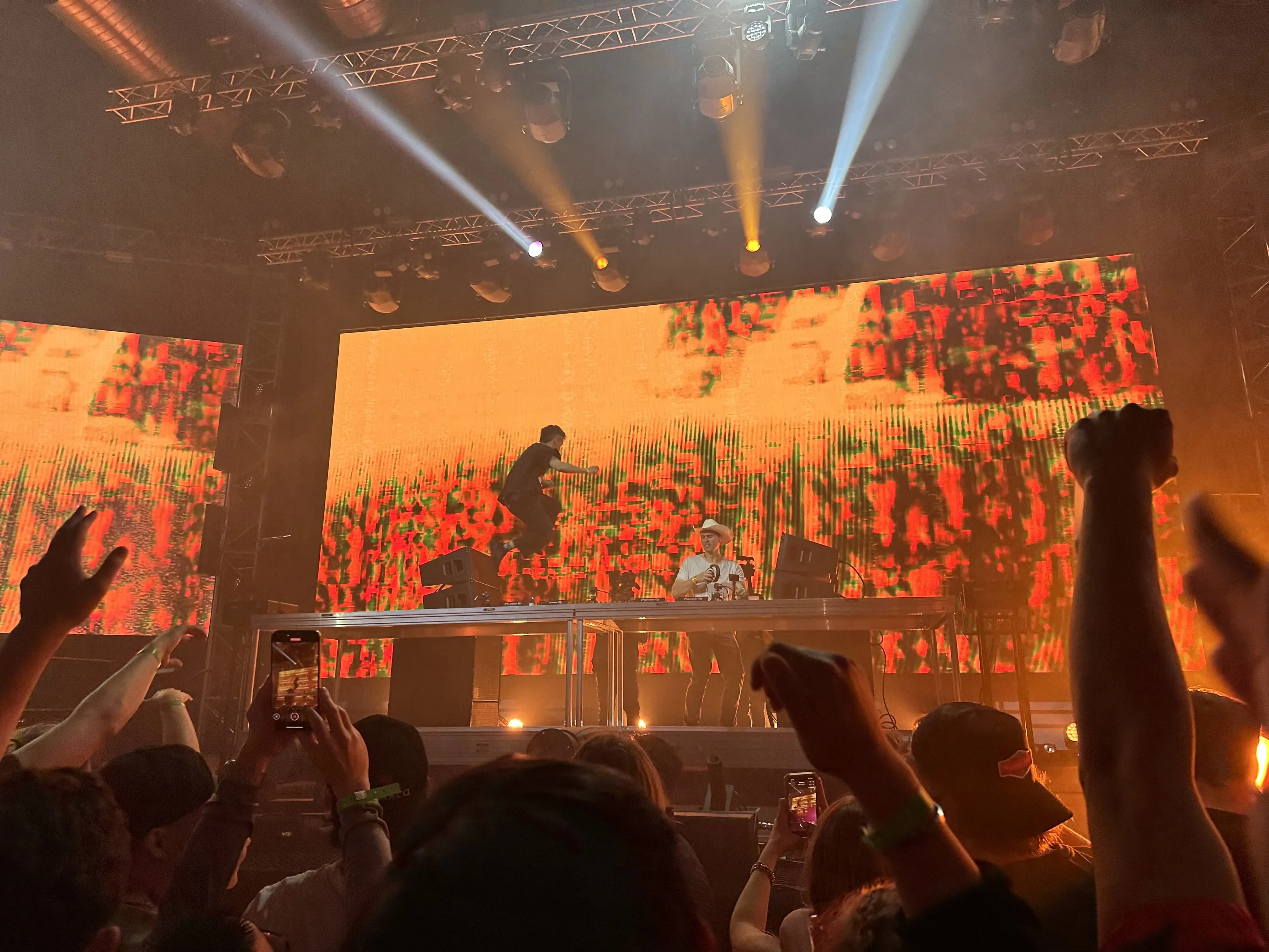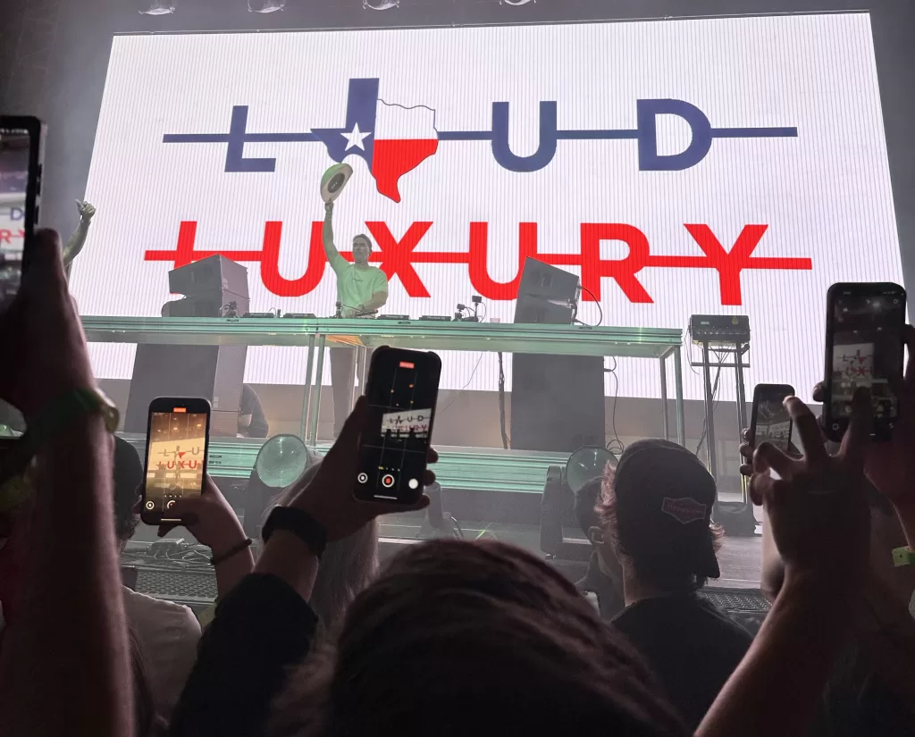 After a short break, the duo emerged with the screen behind them displaying “LOUD LUXURY” in all caps, but substituting the state of Texas for the “O.” One half of the duo greeted the crowd adorned with a cowboy hat, obviously excited to be in Texas. Climbing onto the table and jumping around throughout the show, the DJs’ energy was infectious.