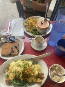 The next morning we started our day at Bouldin Creek Cafe, a local woman owned vegan/vegetarian restaurant. Where we feasted on their migas breakfast plate and vegan eggs benedict. The star of the show was the vegan blueberry cornbread with vegan butter, it set us up perfectly for the delectable day ahead (pictures obviously included). Traffic, and the cafe wait, caught up to us and we missed spill tab, a French-Korean artist who I was very excited for. I mourned it with the cornbread.