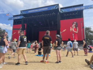 After Samia we quickly hustled over to catch Wallows at American Express, both ready for lunch and the American alt-rock band that awaited us. ACL was clearly ready for Wallows with a large crowd already there by the time we arrived. We laid out our picnic blanket and munched on our sandwiches, ready for the two hour set list. Early on Wallows surprised the crowd by feeding their song “Sun Tan” into a cover of One Direction’s “What Makes You Beautiful” (the crowd loved it, needless to say). Wallows filled their set list with a mix of old and new, despite having recently released their sophomore album “Tell Me That It’s Over.” The band kept it interesting by having Dylan, Braeden, and Cole alternate vocalist responsibilities, with Dylan displaying his ability to play the drums while Cole sang. The set ended with the hit “Are You Bored Yet?,” with Dylan complimenting the crowd as they sang Clairo’s part “You guys sound just like Clairo” (how sweet, but if Dylan had heard me singing this part, he would have not said that).